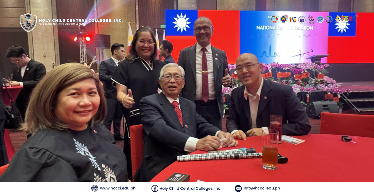 Holy Child Central Colleges, Inc. (HCCCI) was deeply honored to take part in the celebration of the 114th National Day of the Republic of China (Taiwan) on October 9, 2025, held at the Grand Ballroom of the Grand Hyatt Manila, Bonifacio Global City, Taguig. The event, hosted by His Excellency Ambassador Wallace M.G. Chow and Mrs. Chow, gathered diplomats, government officials, and academic representatives from across the country to commemorate Taiwanโs national pride, progress, and enduring partnerships in the region.