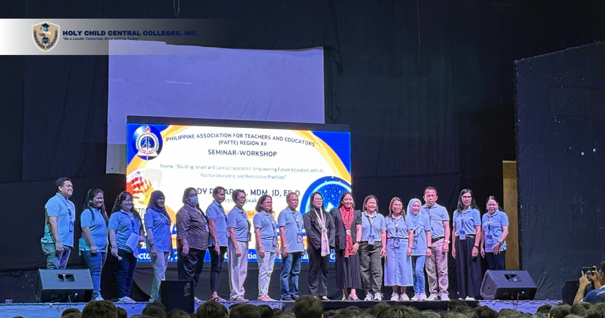 Holy Child Central Colleges, Inc. (HCCCI) reaffirmed its dedication to advancing transformative teacher education through its active participation in the Philippine Association for Teachers and Educators (PAFTE) Region XII Seminar-Workshop held on October 4, 2025, at the KCC Convention Center, General Santos City. Anchored on the theme โBuilding Smart and Caring Classrooms: Empowering Future Educators with AI, Positive Discipline, and Restorative Practices,โ the seminar aimed to prepare future educators with the values, digital literacy, and human-centered skills essential for the evolving demands of 21st-century education.